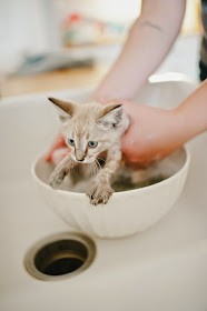 So I pick him up and brought him back to the house, luckily talking Levi into coming home "just for a few minutes" to help me bathe him. Cue two hours later.... There were SO.MANY.FLEAS. Like. I cannot explain to you how many. He was absolutely covered with fleas and dirt- clearly a stray in need of a home! Turns out with a 5 week old kitten all you can use on them is Dawn soap, no flea meds or baths. We literally had to use tweezers and pluck every single flea off of him. It was as awful as you would think. I was actually sore the next day from doing that for 1.5hrs! (perhaps I shouldn't admit that...).